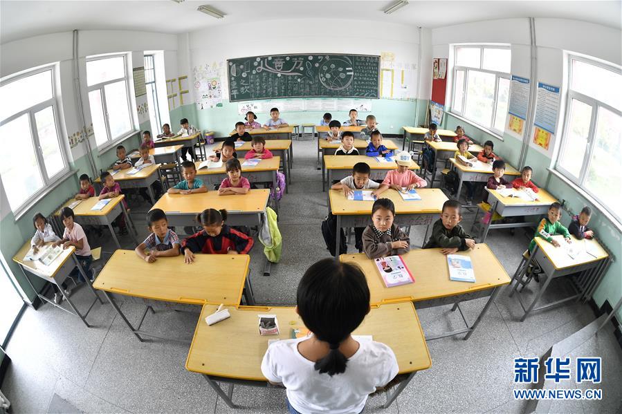 寧夏銀川市永寧縣閩寧鎮(zhèn)原隆村原隆小學(xué),一年級的孩子們在上課(2019年9月3日攝)。 新華社記者 王鵬 攝