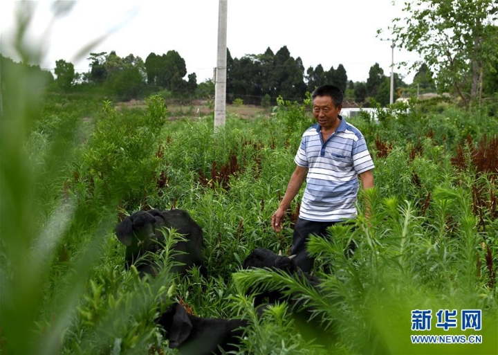 6月13日拍攝的四川省廣安市革新村(無人機照片)。 新華社記者 楊進 攝 “喜羊羊”讓村民喜洋洋 連綿的小山坡上,樹木蒼翠,綠草茵茵,一群群黑山羊低頭吃草,遠遠望去,像綠毯上點綴的黑珍珠。 山坡下,62歲的樂至縣金鼓村村民楊老漢,一邊在柑橘園修枝,一邊笑呵呵地說:“‘雙掛鉤’讓我住上了好房子,‘喜羊羊’讓我過上了好日子。” 金鼓村曾是川中丘陵地區(qū)一個省級重點貧困村。楊老漢所說的“雙掛鉤”,是指城鄉(xiāng)建設用地增減掛鉤試點項目,加上危房改造項目支持,作為貧困戶的他,沒花多少錢就住進了安全舒適的新房子。 “喜羊羊”則是當?shù)?015年啟動的精準扶貧項目,采取“政府+企業(yè)+合作社+農(nóng)戶+保險”的模式,確保黑山羊養(yǎng)殖標準化、收購有門路、意外有保障。 楊老漢最初分到3只母羊,一年后母羊產(chǎn)下羊羔,他將母羊轉給其他貧困戶,自己保留小羊羔繼續(xù)飼養(yǎng)。 “技術、賣羊都有人管,我只管把羊喂好就行,現(xiàn)在都30多只嘍?!睏罾蠞h說,除了養(yǎng)羊,他還到柑橘園、藕塘打工,去年就摘掉了“窮帽子”。 金鼓村黨支部書記楊文武告訴記者,受益于“雙掛鉤”項目,目前全村有260戶村民搬進了生態(tài)宜居的聚居新區(qū),其中貧困戶76戶。如今,脫了貧的村民都親切地把“喜羊羊”項目叫“幸福喜羊羊”。