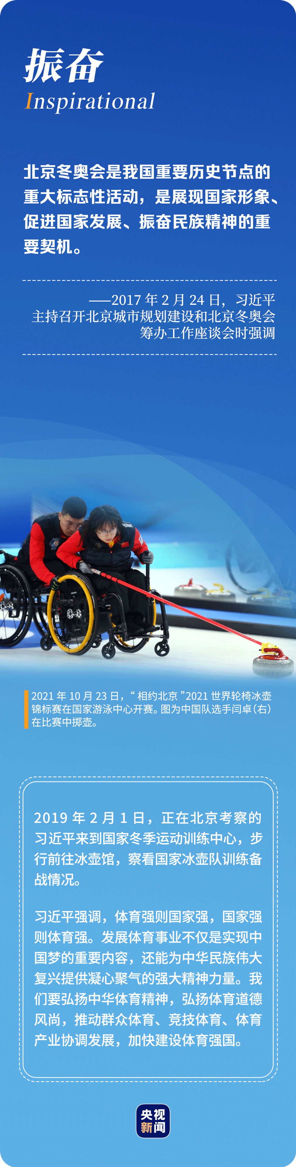 “辦好北京冬奧會、冬殘奧會是黨和國家的一件大事,是我們對國際社會的莊嚴(yán)承諾,做好北京冬奧會、冬殘奧會籌辦工作使命光榮、意義重大?!?年多來,習(xí)近平總書記始終惦記著冬奧會籌辦進(jìn)展,多次實(shí)地考察、主持召開重要會議部署推進(jìn)冬奧籌辦工作。