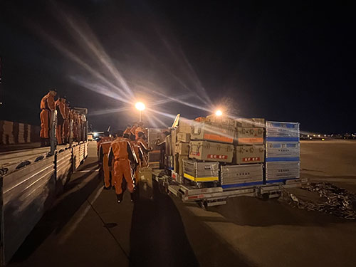 人民網(wǎng)北京2月8日電 (徐祥麗、于洋、蘇纓翔)當(dāng)?shù)貢r(shí)間2月6日,土耳其南部發(fā)生7.8級(jí)強(qiáng)震,造成重大人員傷亡和財(cái)產(chǎn)損失。中國政府第一時(shí)間啟動(dòng)緊急人道主義援助機(jī)制,向土耳其和敘利亞提供緊急援助。據(jù)不完全統(tǒng)計(jì),目前中國救援隊(duì)、公羊救援隊(duì)、藍(lán)天救援隊(duì)等多支救援力量已經(jīng)抵達(dá)或正在前往土耳其地震災(zāi)區(qū)。 當(dāng)?shù)貢r(shí)間2月8日凌晨4點(diǎn)30分(北京時(shí)間9時(shí)30分),中國救援隊(duì)一行82人經(jīng)過約10小時(shí)的飛行,抵達(dá)土耳其阿達(dá)納機(jī)場(chǎng)。隊(duì)長趙明介紹,根據(jù)當(dāng)?shù)貙?shí)際情況,中國救援隊(duì)立即開展卸貨轉(zhuǎn)運(yùn)工作,盡快做好與我駐土耳其使館、當(dāng)?shù)卣?、?lián)合國有關(guān)機(jī)構(gòu)對(duì)接,結(jié)合目前救援進(jìn)展情況,接領(lǐng)具體搜救行動(dòng)任務(wù),并擬派出救援小隊(duì)對(duì)執(zhí)行任務(wù)場(chǎng)地進(jìn)行實(shí)地勘查,同時(shí)選擇安全合適的位置搭建營地。