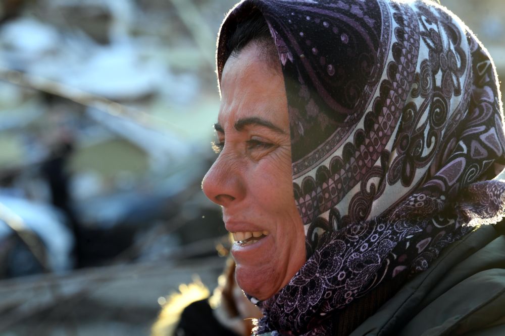 2月8日,在哈塔伊的一處地震廢墟,當(dāng)?shù)鼐用竦却H人的消息。