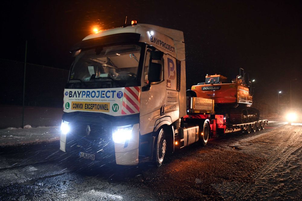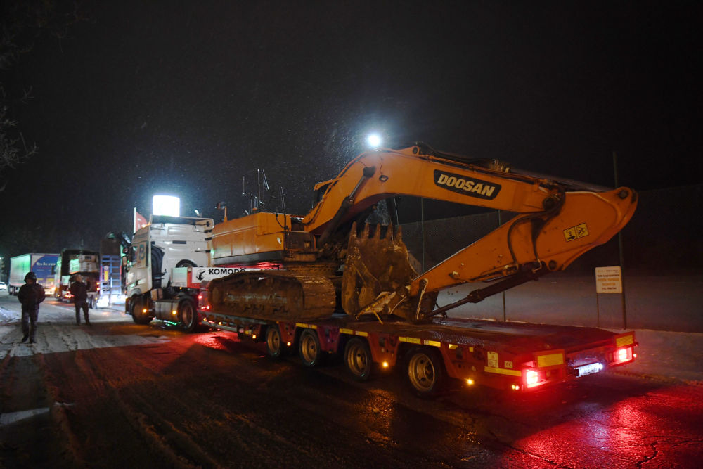 2月6日晚在伊斯坦布爾至安卡拉公路上拍攝的運(yùn)往災(zāi)區(qū)的大型機(jī)械。
