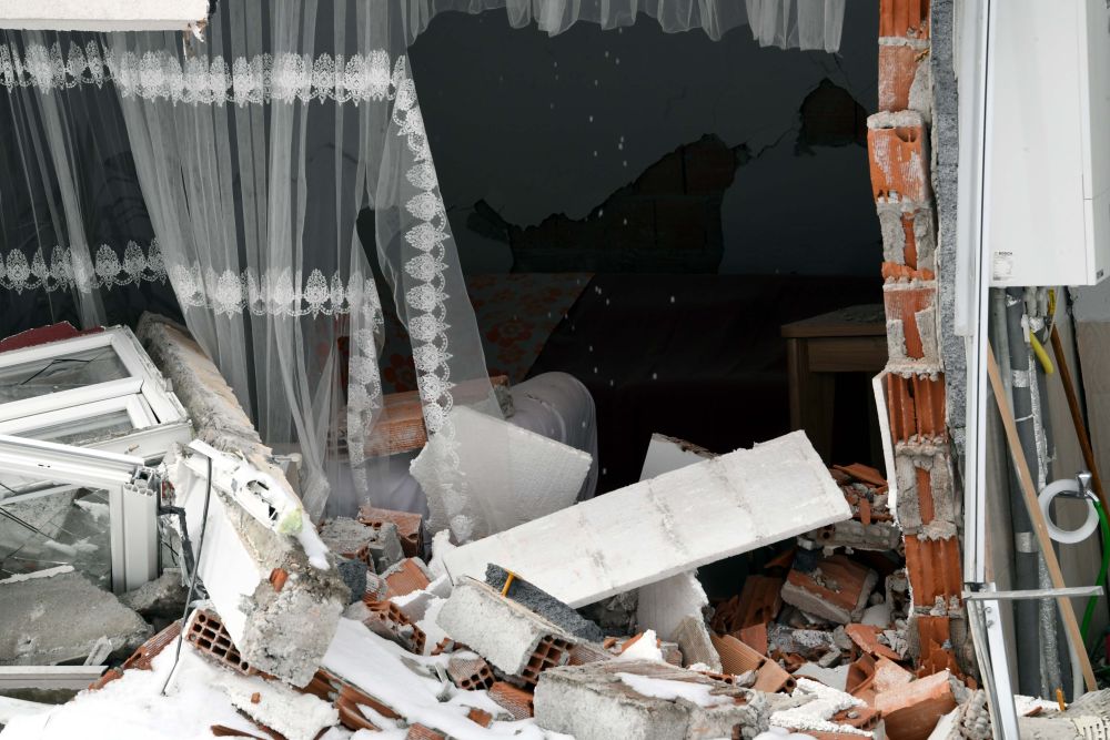 2月7日在埃爾比斯坦地區(qū)拍攝的地震中受損的建筑物。