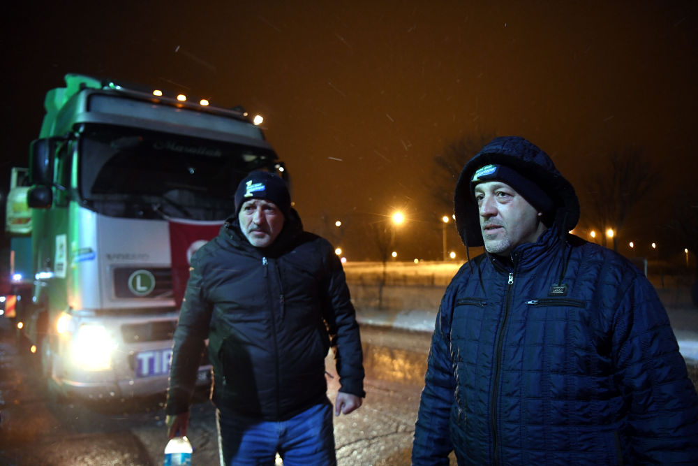 2月6日晚在伊斯坦布爾至安卡拉公路上拍攝的支援災(zāi)區(qū)人員。