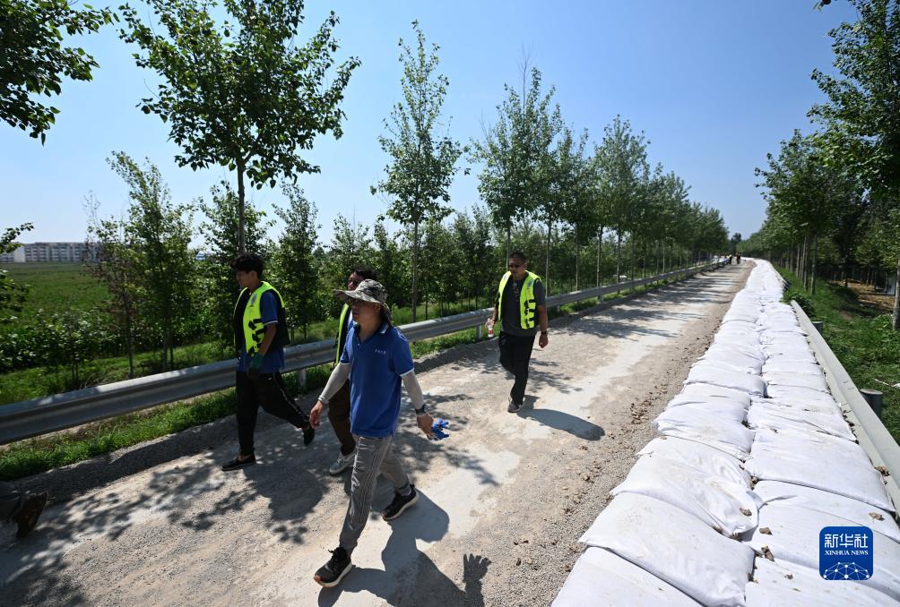 目前,大清河洪水紅色預(yù)警仍在生效中,天津市行洪工作持續(xù)進(jìn)行。8月15日,在位于天津市靜海區(qū)臺(tái)頭鎮(zhèn)清北地區(qū)北圍埝上,由應(yīng)急搶險(xiǎn)專家、基層黨員干部等組成的應(yīng)急搶險(xiǎn)隊(duì)頂著烈日巡護(hù)、排查堤壩風(fēng)險(xiǎn),確保洪水順利下泄和人民群眾生命財(cái)產(chǎn)安全。