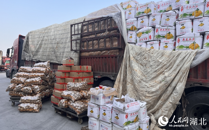 1月27日,冬日暖陽高照,位于湖北省孝感市孝南區(qū)的華中國際食品產(chǎn)業(yè)新城首衡城人頭攢動(dòng)、熱鬧非凡。運(yùn)送蔬菜水果的車輛絡(luò)繹不絕,商戶忙著洽談、裝卸,打年貨的市民在各個(gè)展示攤位品嘗、采買。