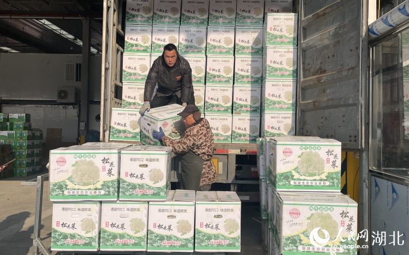 整車蔬菜整裝待發(fā)。人民網(wǎng)記者 張雋攝 除了精品水果,餐桌必不可少的蔬菜也是產(chǎn)銷兩旺。 “來,搭把手!”在蔬菜交易區(qū)的檔口,從事蔬菜批發(fā)20多年的陳依坤招呼工作人員把裝有蔬菜的泡沫箱從貨車搬運(yùn)到短駁車。一車車萵筍、扁豆、大白菜等蔬菜整裝待發(fā),運(yùn)送到華中地區(qū)二級農(nóng)產(chǎn)品批發(fā)市場和大型商超等。