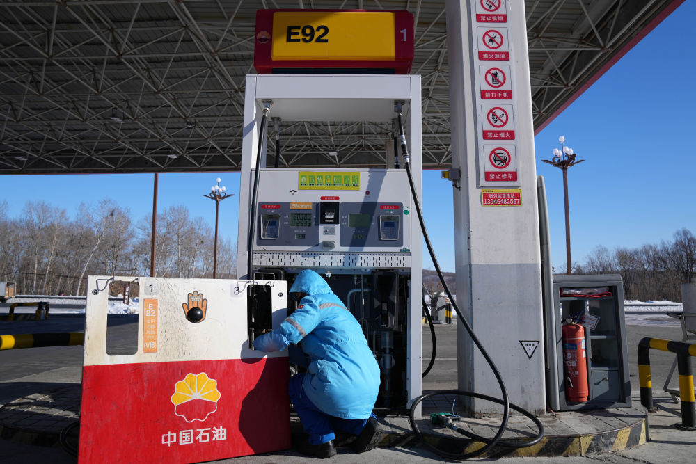 2月2日,中石油黑龍江撫遠(yuǎn)東方第一加油站的員工在站內(nèi)進(jìn)行安全巡檢。