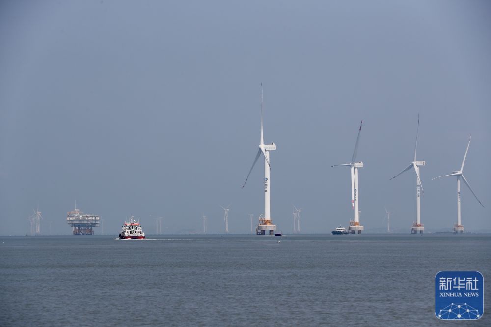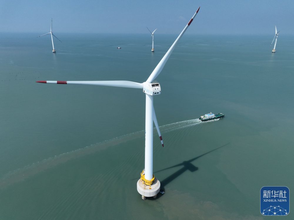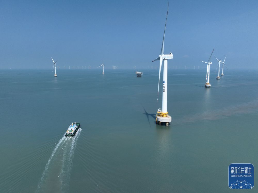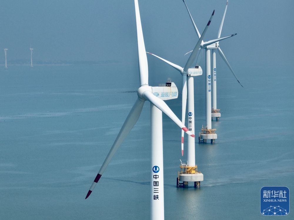 ↑這是8月8日拍攝的三峽福清興化灣海上風(fēng)電場(無人機(jī)照片)。福建三峽海上風(fēng)電國際產(chǎn)業(yè)園自主生產(chǎn)的部分海上風(fēng)電機(jī)組在這里裝機(jī)投產(chǎn)。
