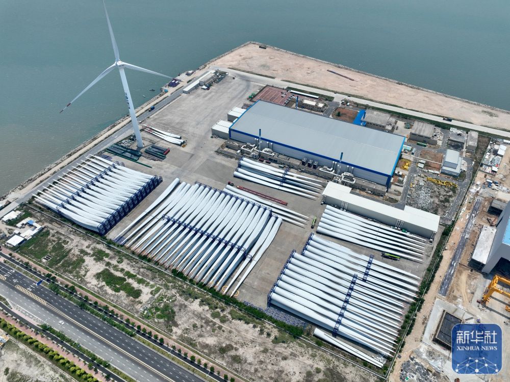 ↑福建三峽海上風(fēng)電國際產(chǎn)業(yè)園內(nèi)東方電氣風(fēng)電(福建)有限公司生產(chǎn)基地一角(2023年11月10日攝,無人機(jī)照片)。