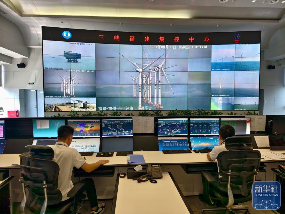 ↑8月8日,工作人員在福建三峽海上風(fēng)電國際產(chǎn)業(yè)園三峽福建集控中心內(nèi)值守。