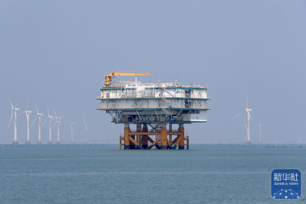 ↑這是8月8日拍攝的三峽福清興化灣海上風(fēng)電場海上升壓站。福建三峽海上風(fēng)電國際產(chǎn)業(yè)園自主生產(chǎn)的部分海上風(fēng)電機(jī)組在這個(gè)風(fēng)電場裝機(jī)投產(chǎn)。