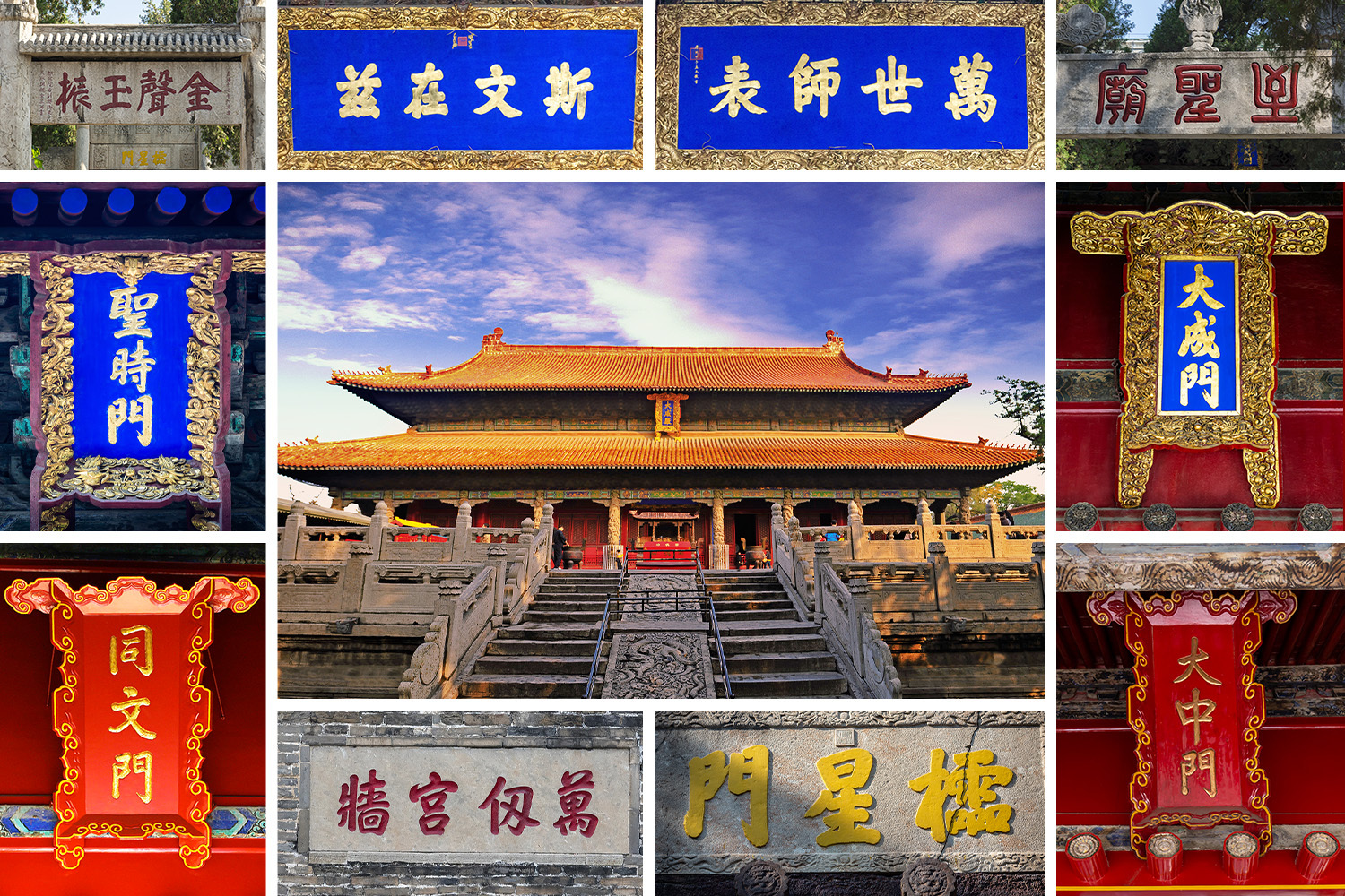△十三碑亭修建年代分布 十三座碑亭 恰如歷史的十三方印章 銘刻著古代帝王來此參拜的盛況 大成殿 在十三碑亭背后 終于迎來整個建筑群的高潮 它是孔廟的核心建筑 ——大成殿