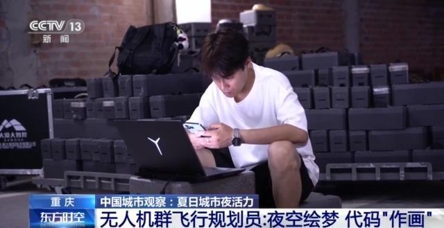 上海中心大廈商務(wù)運(yùn)營有限公司總經(jīng)理 梅雪:隨著國家的免簽政策,這個(gè)假期是境內(nèi)境外的客人雙增。現(xiàn)在夜間的客人增量非常大,所以我們也采取了很多的一些便民措施,比方說延長我們的營業(yè)時(shí)間,然后讓游客們靜靜心心地在上海之巔看完整個(gè)城市的景觀,也充分地了解我們上?!澳Ф肌钡镊攘?。 重慶:業(yè)態(tài)創(chuàng)新百花齊放 催生多元新職業(yè)群體 上海的夜晚,不光流光溢彩,更是充滿了活力,給整個(gè)城市都注入了一股蓬勃生命力。而隨著新的消費(fèi)場(chǎng)景誕生,也催生了不少新職業(yè)。 這幾年,重慶的夜景那可是火遍了全國,尤其是在主城兩江四岸核心區(qū)域啟動(dòng)的常態(tài)化無人機(jī)燈光秀展演,作為一種夜間娛樂形式吸引了大量國內(nèi)外游客,由此增加的消費(fèi)活動(dòng)所帶來的漣漪效應(yīng)為當(dāng)?shù)亟?jīng)濟(jì)作出很大貢獻(xiàn)。光影魔法是如何點(diǎn)亮重慶夜空的呢?讓我們一起去看看背后的故事↓ 無人機(jī)群飛行規(guī)劃員:夜空繪夢(mèng) 代碼“作畫” 夏夜以來,每周六,5000架無人機(jī)在長江、嘉陵江交匯處就會(huì)來一場(chǎng)表演,當(dāng)人們沉醉于流動(dòng)的光影時(shí),鮮少有人留意,這背后凝聚著一群人的專注與付出。
