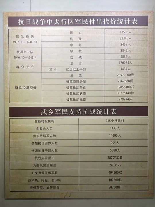 武鄉(xiāng)軍民支持抗戰(zhàn)相關(guān)統(tǒng)計。(新華網(wǎng) 于楊 攝)