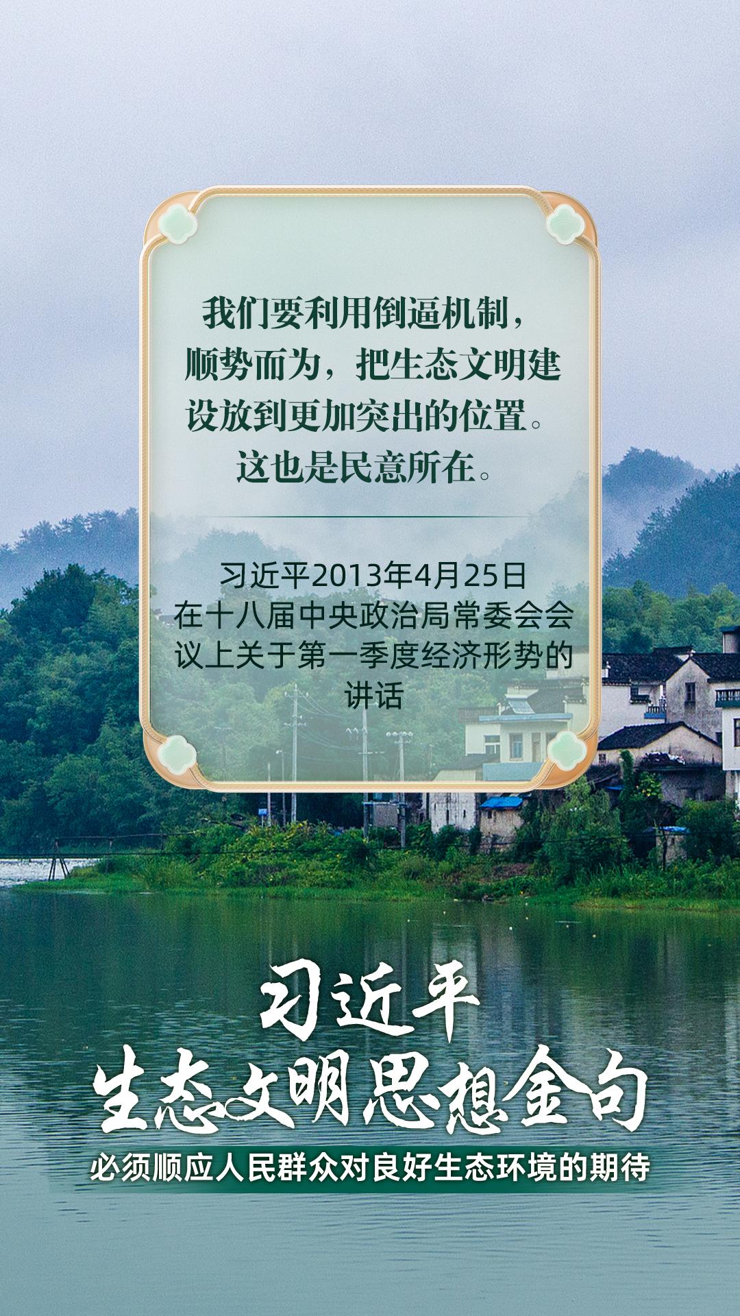 黨的十八大以來,習(xí)近平總書記把生態(tài)文明建設(shè)擺在治國理政突出位置,大力推動生態(tài)文明理論創(chuàng)新、實踐創(chuàng)新、制度創(chuàng)新,創(chuàng)造性提出一系列新理念新思想新戰(zhàn)略,形成了習(xí)近平生態(tài)文明思想,對生態(tài)文明建設(shè)的時代之問、世界之問、人民之問作出科學(xué)解答。大象新聞《習(xí)近平生態(tài)文明思想金句》系列策劃,今天推出《必須順應(yīng)人民群眾對良好生態(tài)環(huán)境的期待》。