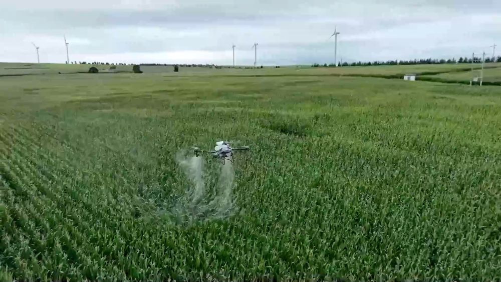 ■從"扛鋤頭"到"點屏幕" 智慧農(nóng)業(yè)促增收 當前,正值玉米灌漿期。在內(nèi)蒙古科爾沁右翼前旗察爾森鎮(zhèn)水泉嘎查萬畝高標準農(nóng)田上空,裝載農(nóng)藥的無人機正在沿著預(yù)設(shè)航線噴灑農(nóng)藥。