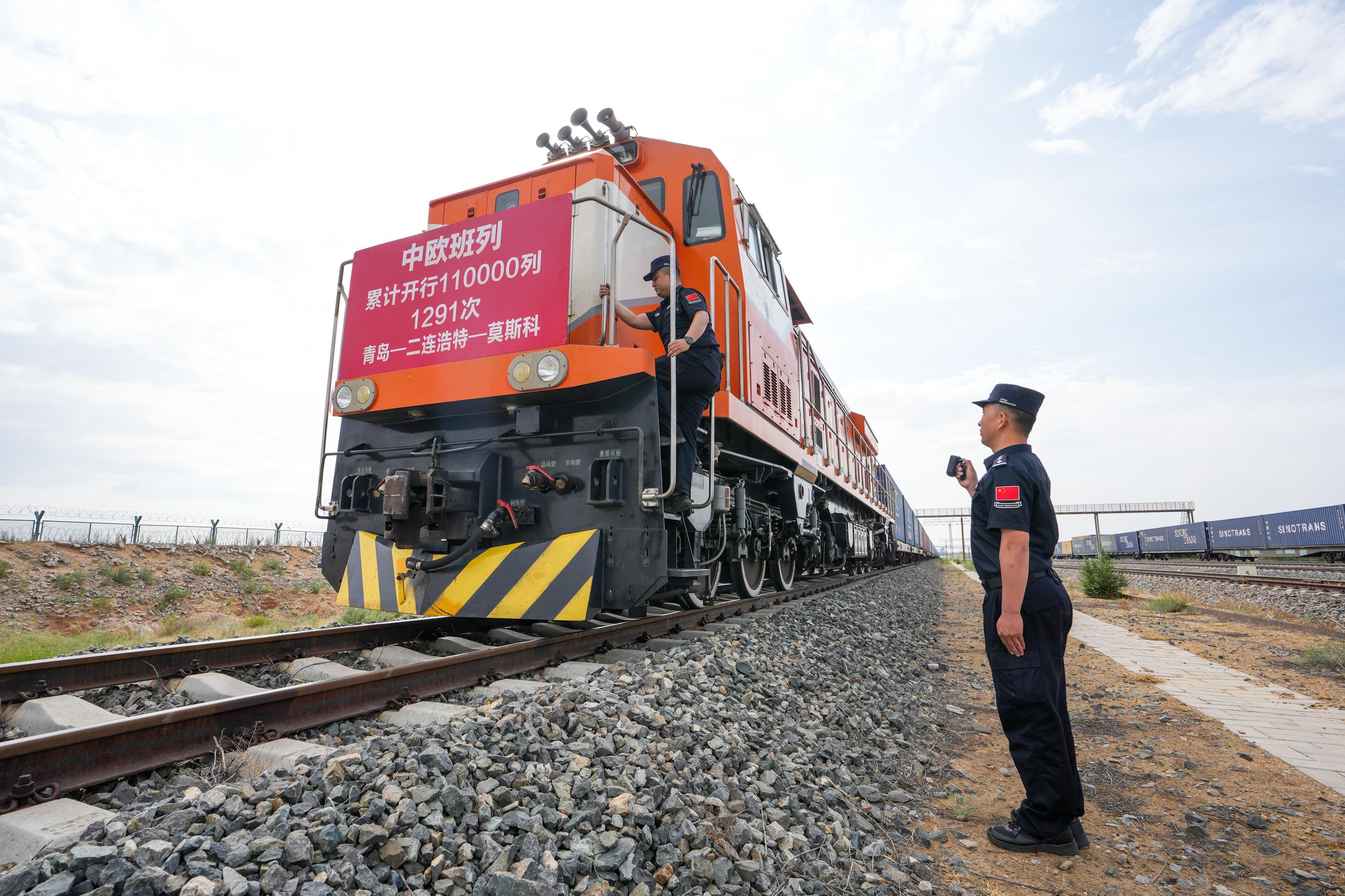 6月10日,我國(guó)第11萬(wàn)列中歐班列從中國(guó)-上海合作組織地方經(jīng)貿(mào)合作示范區(qū)多式聯(lián)運(yùn)中心發(fā)出,滿(mǎn)載1萬(wàn)余臺(tái)山東本地制造的智能家電,貨值超2000萬(wàn)元人民幣,經(jīng)內(nèi)蒙古二連浩特口岸出境,駛向俄羅斯首都莫斯科。