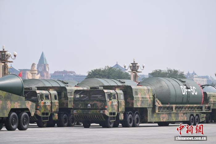 9月3日,紀(jì)念中國(guó)人民抗日戰(zhàn)爭(zhēng)暨世界反法西斯戰(zhàn)爭(zhēng)勝利80周年大會(huì)在北京隆重舉行。圖為核導(dǎo)彈第二方隊(duì)"東風(fēng)-5C"液體洲際戰(zhàn)略核導(dǎo)彈駛過(guò)天安門廣場(chǎng)。 中新網(wǎng)記者 趙文宇 攝