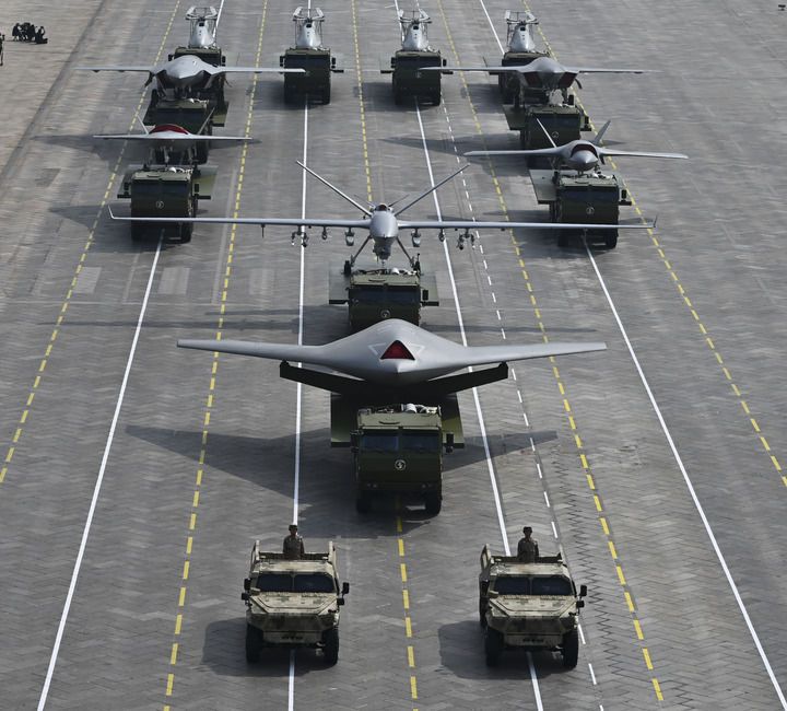 ↑9月3日,紀念中國人民抗日戰(zhàn)爭暨世界反法西斯戰(zhàn)爭勝利80周年大會在北京隆重舉行。這是空中無人作戰(zhàn)方隊接受檢閱。新華社記者 張鋮 攝