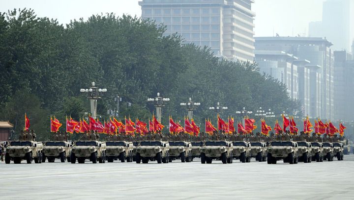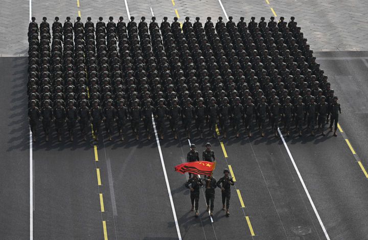 ↑9月3日,紀念中國人民抗日戰(zhàn)爭暨世界反法西斯戰(zhàn)爭勝利80周年大會在北京隆重舉行。這是信息支援部隊方隊通過天安門廣場。新華社記者 陳益宸 攝