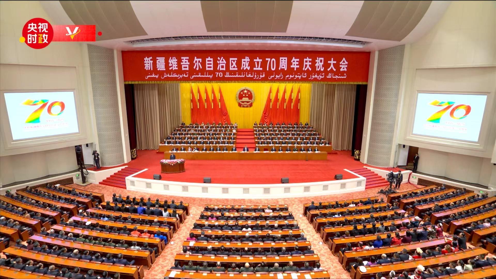 25日上午,新疆維吾爾自治區(qū)成立70周年慶祝大會在新疆人民會堂隆重舉行。中共中央總書記、國家主席、中央軍委主席習(xí)近平出席慶祝大會。