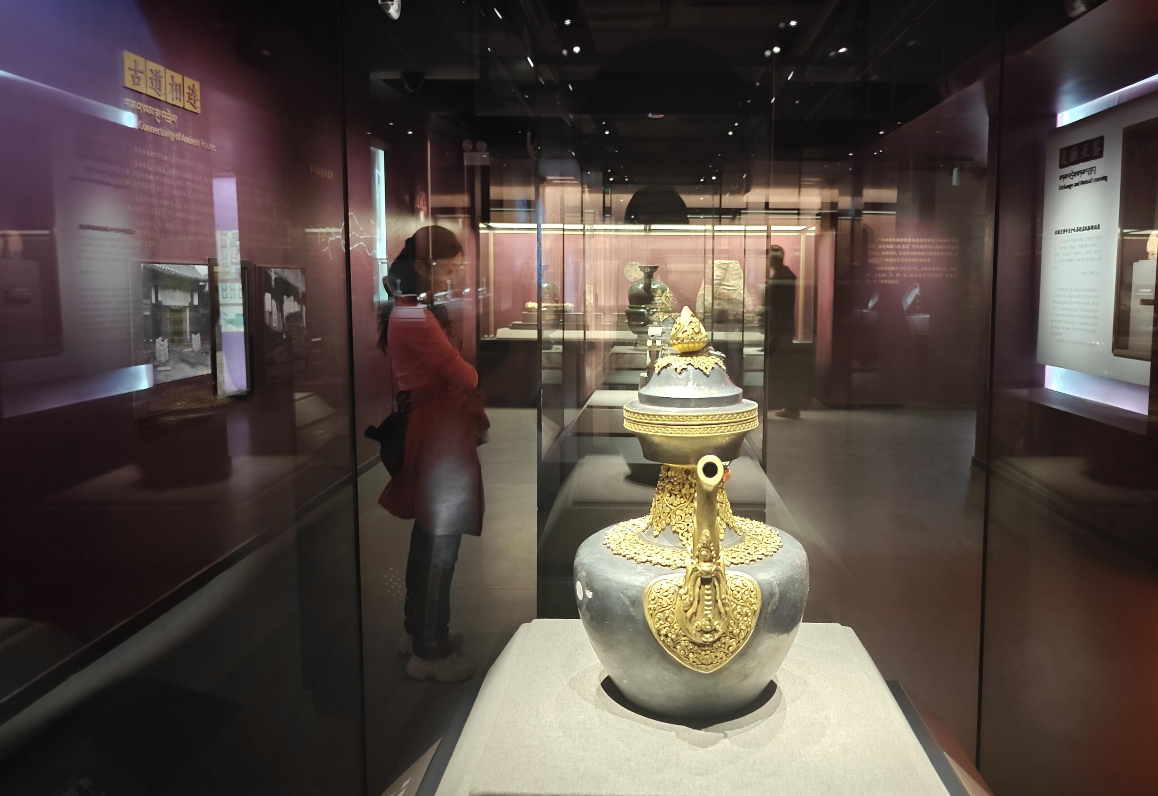 展覽以“合同一家”“萬象更新”兩大核心為脈絡(luò),集中展示了唐卡、造像、瓷器、貝葉經(jīng)等布達(dá)拉宮珍藏的300余件體現(xiàn)民族團(tuán)結(jié)的文物,系統(tǒng)呈現(xiàn)了西藏地方與祖國血脈相連的歷史脈絡(luò),其中百余件為首次展出。