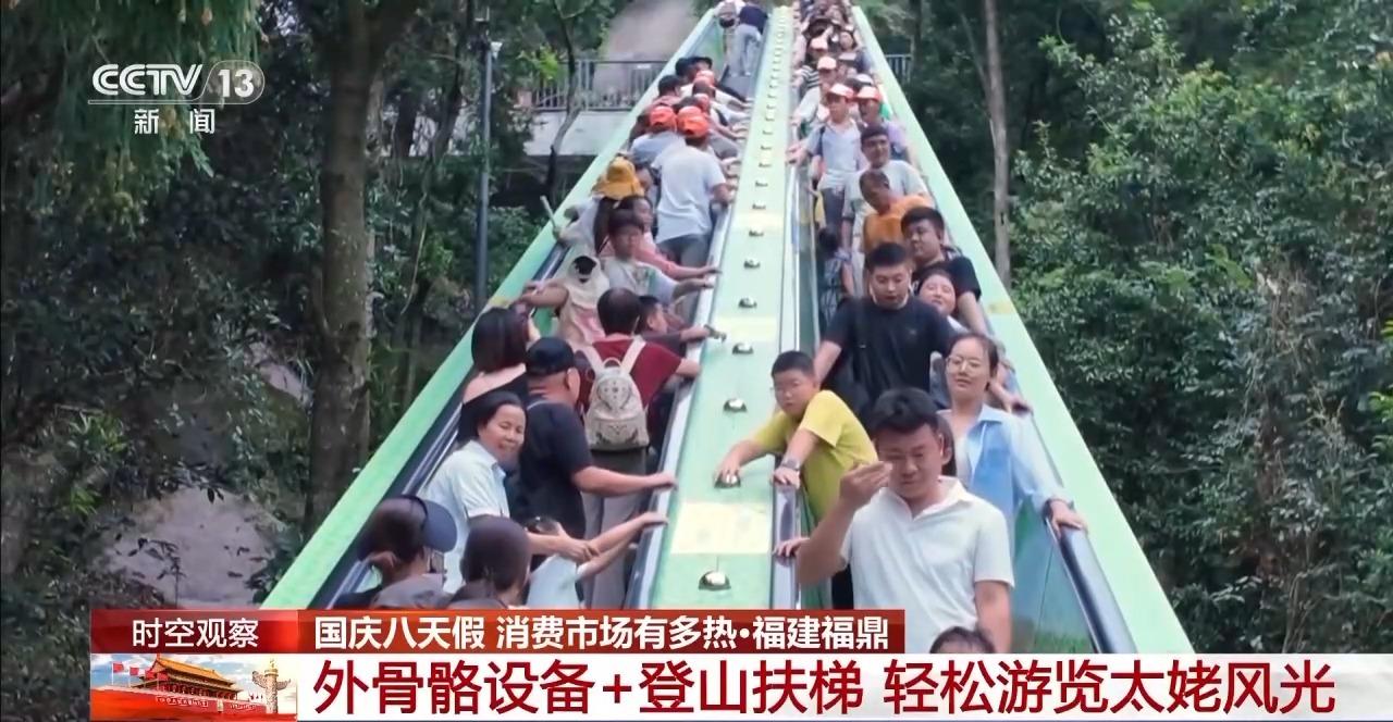 今年國(guó)慶假期疊加中秋,總共八天假。面對(duì)全年文旅消費(fèi)最旺的節(jié)點(diǎn)之一,國(guó)家統(tǒng)計(jì)局表示,假期消費(fèi)有望繼續(xù)擴(kuò)容提質(zhì)。這個(gè)國(guó)慶中秋假期,哪些領(lǐng)域成為新的消費(fèi)增長(zhǎng)點(diǎn)?在政策紅利疊加下,這個(gè)假期買(mǎi)什么更劃算?國(guó)慶八天假,消費(fèi)市場(chǎng)有多熱?又有了哪些新變化? 爬山配上外骨骼 價(jià)格怎樣?體驗(yàn)如何? 假日消費(fèi)說(shuō)到底是服務(wù)消費(fèi)。國(guó)慶中秋假期哪些領(lǐng)域成為新的消費(fèi)增長(zhǎng)點(diǎn)?先看看各大景區(qū)給大家提供了哪些更新的服務(wù)。 第一個(gè)關(guān)鍵詞:外骨骼。金秋十月,山河錦繡,正是暢游山水的好時(shí)節(jié)。爬山時(shí)配上外骨骼是什么體驗(yàn)?租用外骨骼價(jià)格貴不貴?戳視頻,跟著記者一起去福建福鼎的太姥山世界地質(zhì)公園,一起來(lái)體驗(yàn)一下吧。 在太姥山的熱門(mén)景點(diǎn)之一——九鯉湖,從2日開(kāi)始,景區(qū)將會(huì)迎來(lái)客流的高峰期,截至中午1時(shí),景區(qū)的入園人數(shù)已經(jīng)超過(guò)了1.1萬(wàn)人次,是平日同時(shí)段客流量的3.5倍。工作人員告訴記者,從早上的7時(shí)開(kāi)始,就會(huì)有游客開(kāi)始陸續(xù)入園。到中午12時(shí)左右,是游客入園的高峰期。景區(qū)內(nèi)的“一線(xiàn)天”,是太姥山最熱門(mén)的打卡點(diǎn)之一。“一線(xiàn)天”是一處非常具有特色的花崗巖洞穴,這里最窄的地方還不到30厘米,每次只能允許一位游客貼著石壁通行,從早上9點(diǎn)半開(kāi)始,這里就排起了長(zhǎng)隊(duì)。