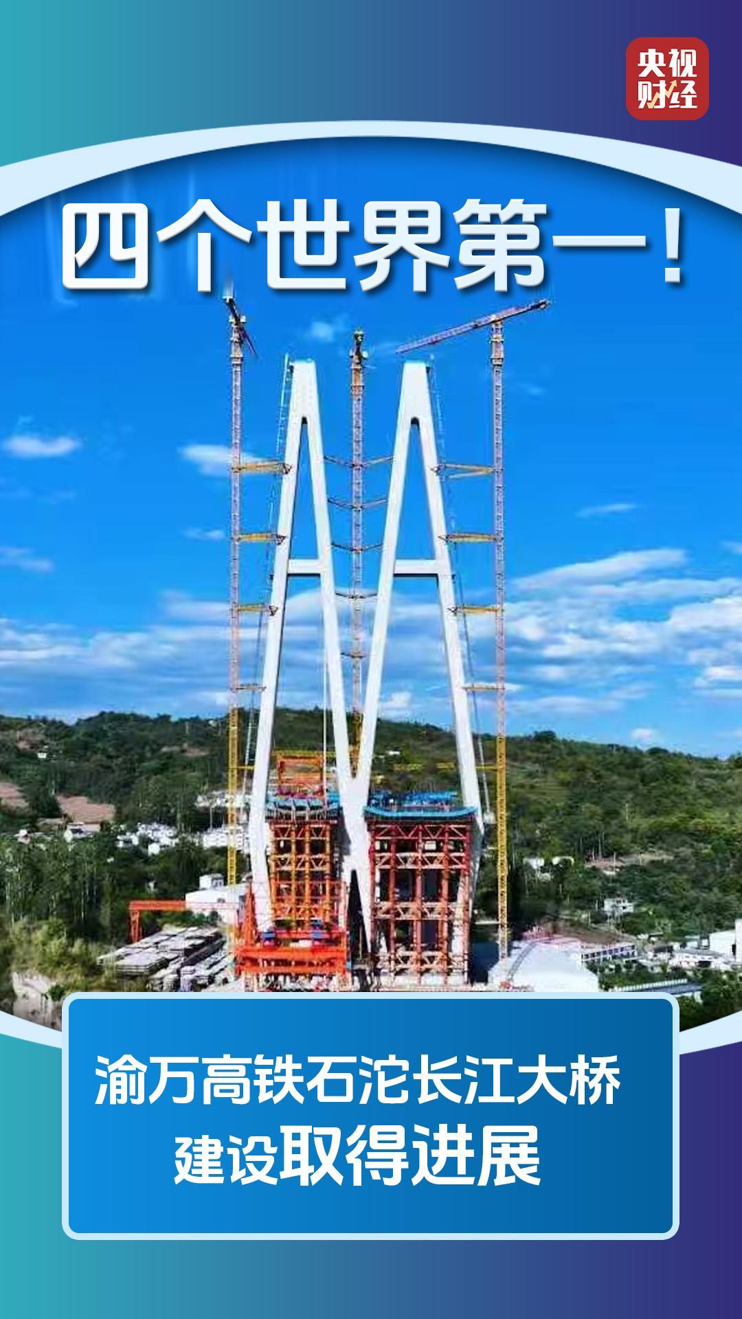 石沱長江大橋正線長度1416.9米,是渝萬高鐵項目建設關鍵節(jié)點及控制性工程,大橋建成通車后,將創(chuàng)下四個世界第一:世界首次采用公鐵合建雙聯(lián)塔、世界首次采用公鐵同層分幅主梁,6#主塔高253米,是世界最高雙聯(lián)主塔;主跨跨度608米,是世界最大公鐵合建同層分幅混合梁斜拉橋。