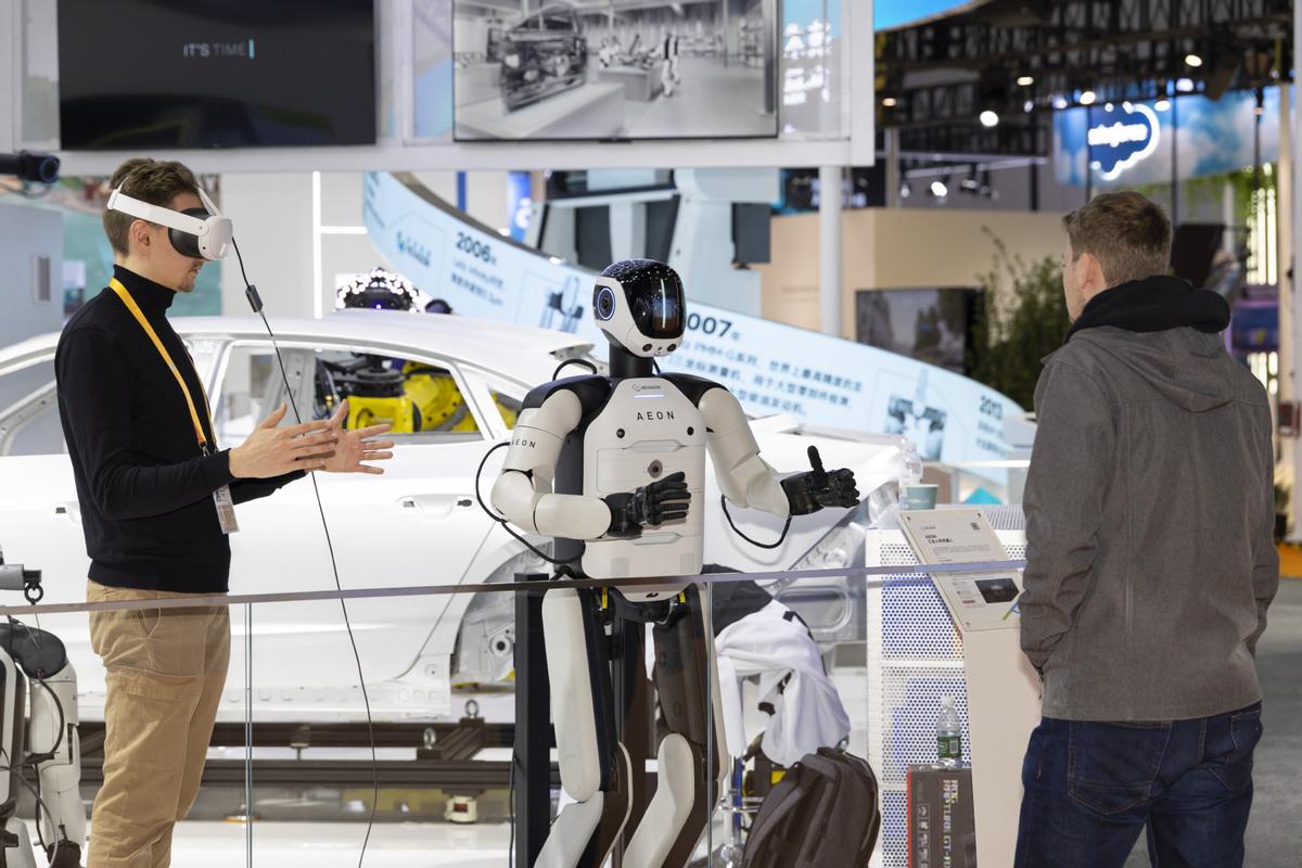 11月4日,工作人員在第八屆進(jìn)博會(huì)技術(shù)裝備展區(qū)調(diào)試機(jī)器人。(圖片來(lái)源:新華社)