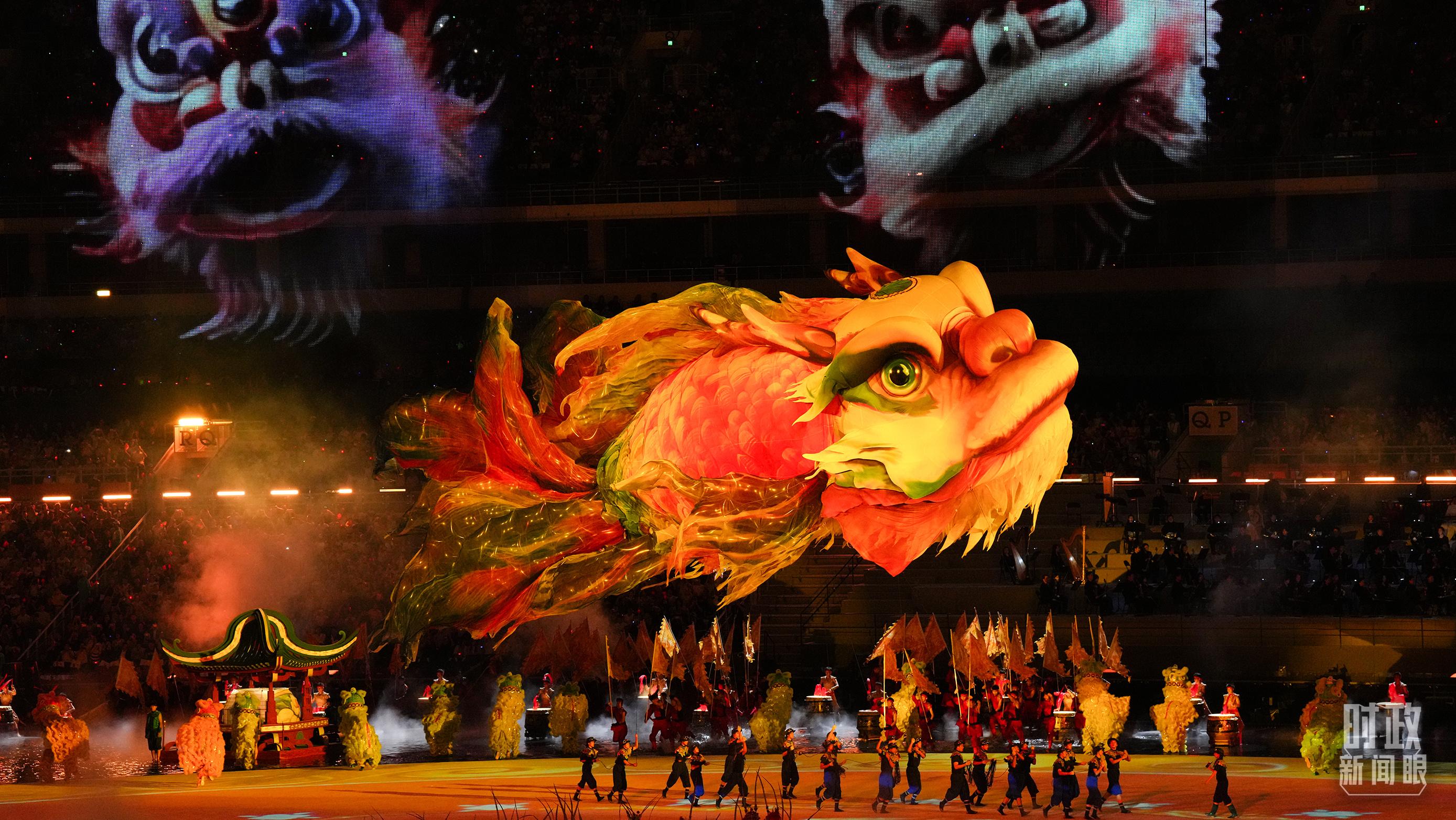 粵港澳大灣區(qū)作為全國科技重鎮(zhèn),傳統(tǒng)嶺南文化與前沿科技深度融合成為本屆全運會開幕式的一大亮點。醒獅表演與人工智能技術(shù)相互交融,英歌鑼鼓搭配全息投影,龍舟競渡場景通過AR技術(shù)“劃”入觀眾席,一場“古今對話”的沉浸式藝術(shù)盛宴“燃動”全場。粵劇、詠春、麒麟、廣繡、嵌瓷等璀璨的嶺南文化符號巧妙融入,賦予開幕式獨特的嶺南神韻。
