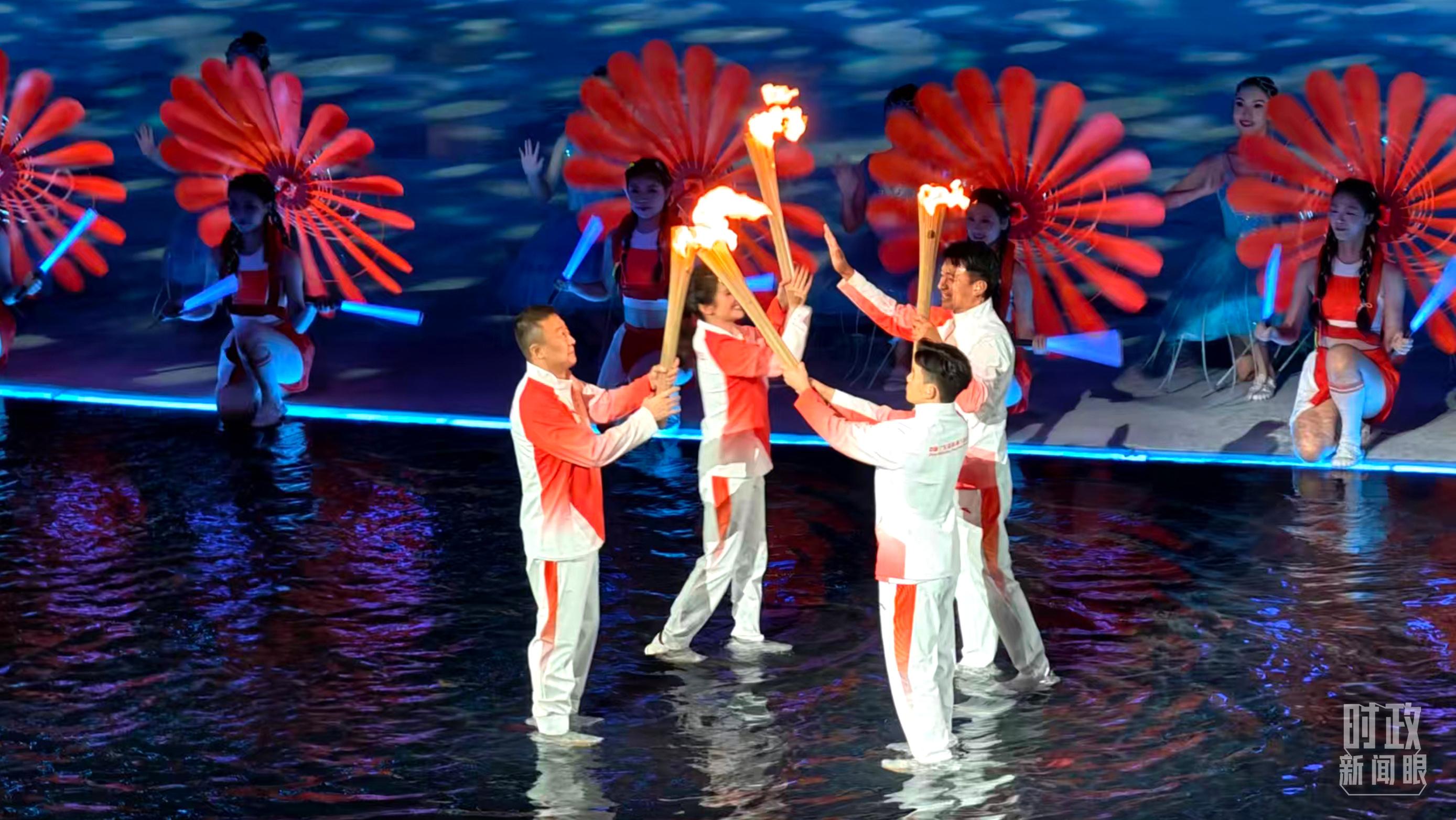 △第十五屆全運會主火炬點燃環(huán)節(jié)。(總臺央視記者范一鳴、蔣碩拍攝)