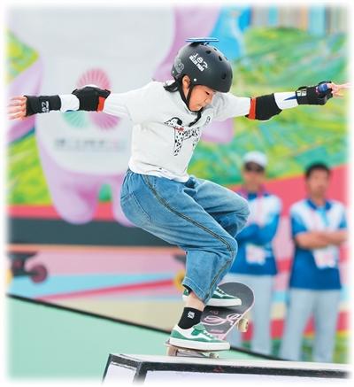 上海隊(duì)選手徐琳瀧在滑板比賽中?! ⌒氯A社記者 劉 坤攝