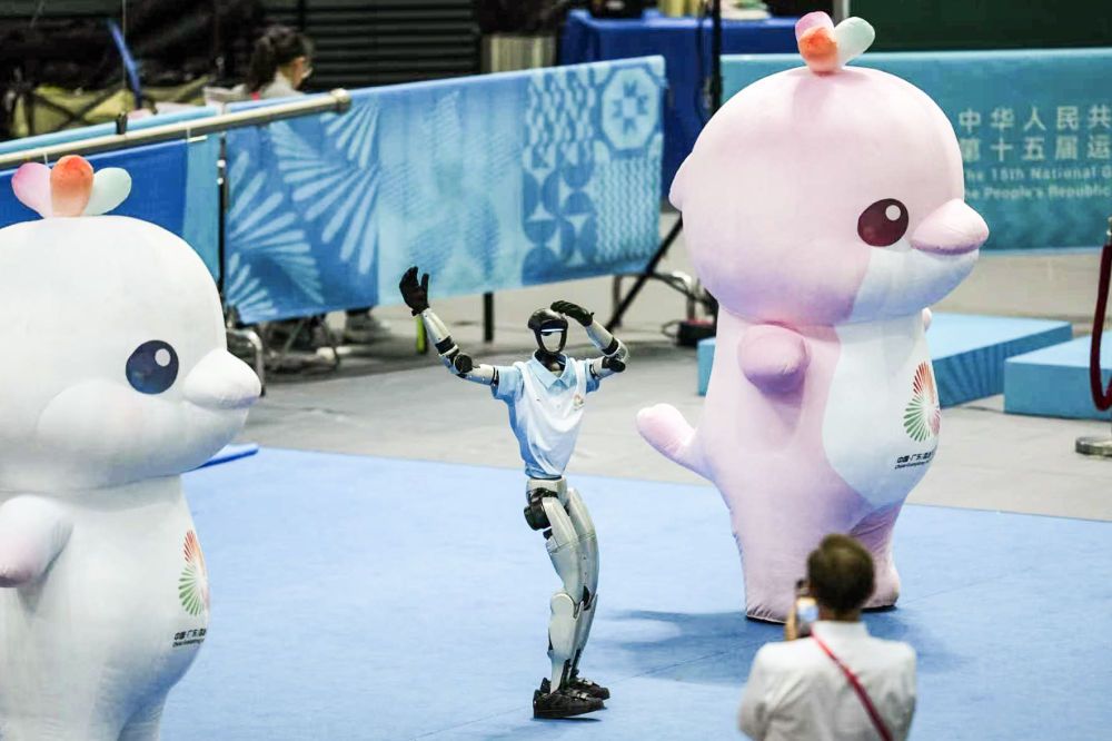 11月9日,機器人在第十五屆全國運動會開幕式現(xiàn)場表演。