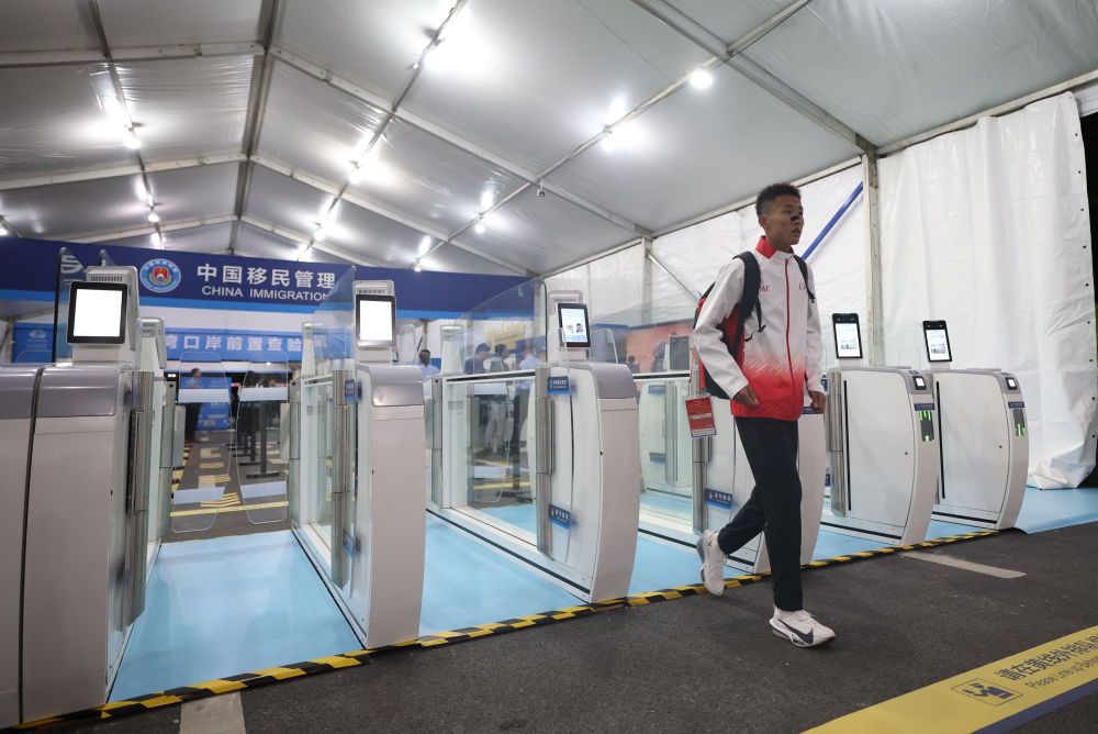 11月15日,全運會歷史上首個跨境馬拉松賽事開賽前,參賽選手在深圳灣口岸前置查驗區(qū)完成查驗手續(xù)。本次賽事通過智慧管理體系,實現(xiàn)了無感通關(guān)。