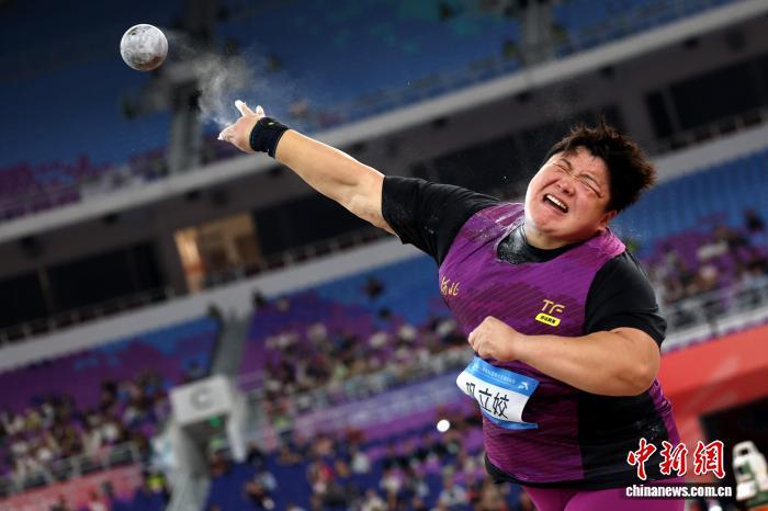 11月16日,第十五屆全國運(yùn)動會田徑女子鉛球決賽在廣東省奧體中心體育場舉行。奧運(yùn)冠軍、河北隊(duì)鞏立姣以19米68奪得金牌?!≈行律缬浾?富田 攝
