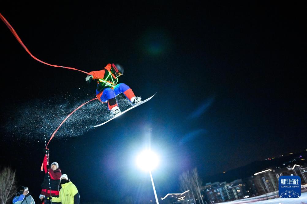 2022年12月10日,滑雪愛好者在位于吉林省吉林市的松花湖度假區(qū)V-PARK地形公園挑戰(zhàn)跳臺滑雪。新華社記者顏麟蘊(yùn)攝