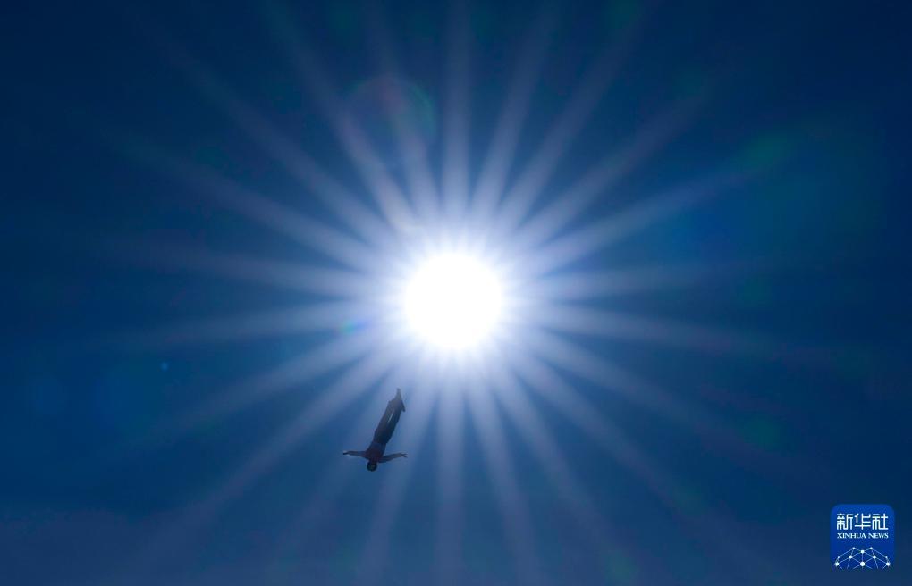 2012年1月7日,第12屆全國冬季運(yùn)動會自由式滑雪空中技巧規(guī)定動作的比賽在吉林市北大壺滑雪場舉行。圖為齊齊哈爾市隊(duì)的女選手孔凡鈺在比賽中進(jìn)行空中翻轉(zhuǎn)時(shí),仿佛從太陽的光暈上滑下來。新華社記者費(fèi)茂華攝