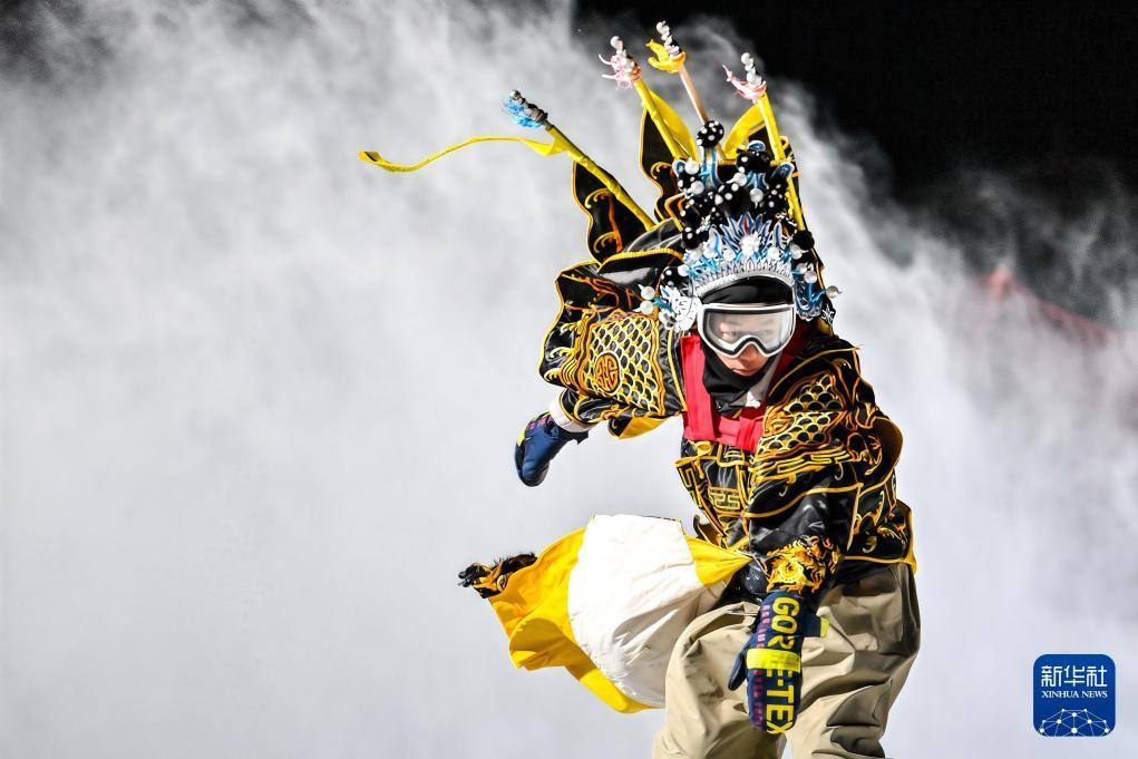 2022年2月15日,中國選手蘇翊鳴在北京2022年冬奧會單板滑雪男子大跳臺決賽中。新華社記者李尕?cái)z