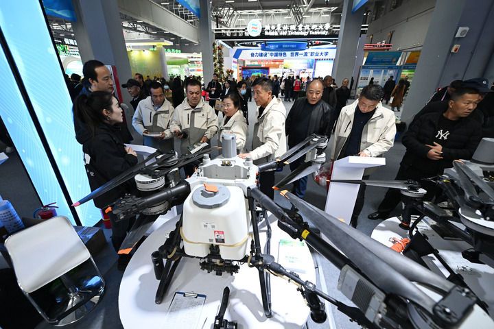 2025年10月25日,參觀者在楊凌農(nóng)高會上了解大疆農(nóng)業(yè)無人機(jī)。新華社記者 李一博 攝