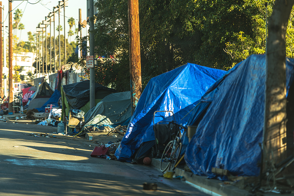 △美國無家可歸者帳篷營地(資料圖)