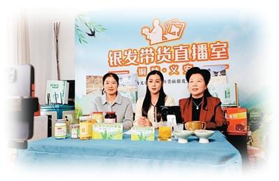 安徽省銅陵市義安區(qū)退休老干部(右一)參與直播帶貨。