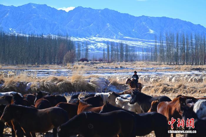 寒冬時節(jié),中新社、中新網(wǎng)記者走進甘肅省酒泉市肅北縣黨城灣鎮(zhèn)浩布勒格村,該村年輕的養(yǎng)馬人其烏摳每天騎馬去草場給馬匹拉水、投喂飼料。閑暇時,他還會使用無人機觀察馬匹的動態(tài)行蹤,通過網(wǎng)絡平臺分享自家馬兒的視頻。