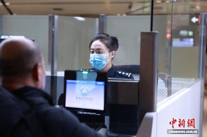 哈爾濱出入境邊防檢查站移民管理警察為入境旅客辦理通關(guān)手續(xù)?!£惿虚?攝