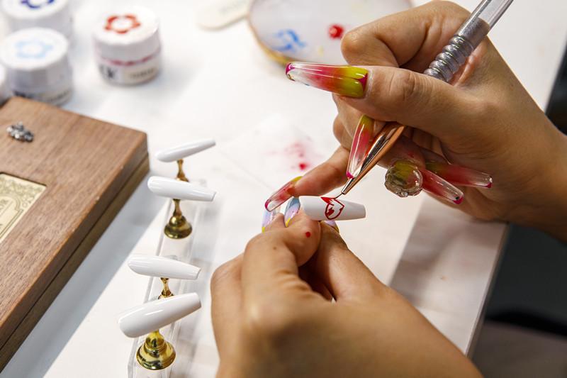 美甲設(shè)計(jì)師苗強(qiáng)麗說(shuō):“我在甲片上畫青花、繪祥云,感覺(jué)是把我們的文化戴在手上,傳播出去。我們做的不僅是一件商品?!?/p>