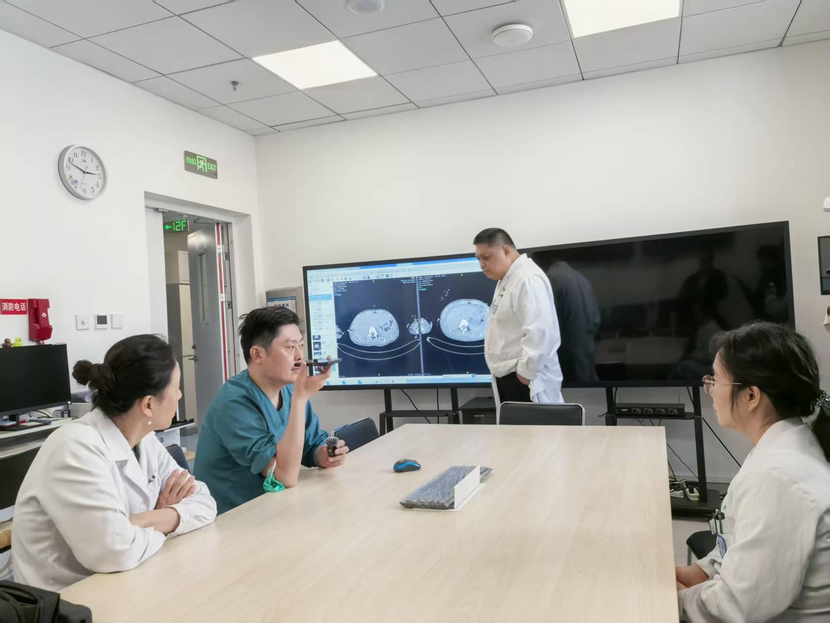 會議室內(nèi),CT影像清晰地投射在屏幕上。來自不同科室的專家們圍坐在桌前,仔細(xì)聽取放射影像解讀。大家爭分奪秒,敲定下一步治療細(xì)節(jié),只為給這個年輕的生命創(chuàng)造更多機(jī)會。
