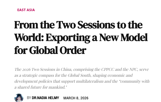 歐洲《現(xiàn)代外交》網(wǎng)站3月8日刊載埃及本尼蘇伊夫大學(xué)副教授納迪亞·赫爾米博士的評論文章稱,2026年中國兩會為全球南方國家提供了戰(zhàn)略指南,會議制定了支持多邊主義和推動構(gòu)建人類命運(yùn)共同體的經(jīng)濟(jì)發(fā)展政策。會議推動南南合作,促進(jìn)可持續(xù)發(fā)展,并提供了基于伙伴關(guān)系和互利共贏的全球治理新模式。