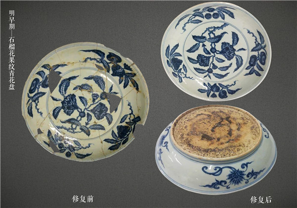 明·早期石榴花果紋青花盤修復(fù)。 受訪者供圖 中國古陶瓷是人類文化藝術(shù)寶庫中的璀燦明珠,而古陶瓷修復(fù)技藝就是讓這顆明珠重放光彩的藝術(shù)創(chuàng)作。古陶瓷修復(fù)技藝是一項綜合造型、雕塑、色彩、書法、繪畫、化工等的特殊藝術(shù)創(chuàng)作,通過拆卸、清洗、補(bǔ)缺、打磨、打底、上色、上釉、做舊等多個步驟,讓殘缺不全的陶瓷器具光彩如初、重現(xiàn)原貌。古陶瓷修復(fù)有三種:研究修復(fù)、展覽修復(fù)、商品修復(fù)。 古陶瓷修復(fù)可上溯到清中期。清末,古陶瓷修復(fù)技藝已在社會上初步形成,修復(fù)工匠走街串巷來修補(bǔ)民間一些殘破瓷器;開埠后,隨著古董產(chǎn)業(yè)的興起,古陶瓷極易破損的特性催生了一批專業(yè)修復(fù)人才;解放后,全國以商品修復(fù)古瓷為職業(yè)的僅十人左右。 2019年11月,唐潔將古陶瓷修復(fù)這項技藝申報為福建省省級非物質(zhì)文化遺產(chǎn),當(dāng)前正在等待批復(fù)中。 |