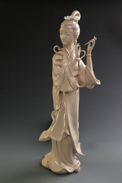 林俊結(jié)合漳州水仙花元素,燒制出東溪窯米黃釉“凌波仙子”像 南靖縣博物館供圖 東溪窯遺址位于漳州市南靖縣與華安縣交界一帶。經(jīng)考古發(fā)現(xiàn),窯址規(guī)模大、延燒時間長,產(chǎn)品以青花瓷為主,包括青瓷、白瓷、醬黑釉、藍釉、米黃釉及五彩瓷等。其中,釉面呈米黃色冰裂紋的漳窯,其器形古樸大方,曾作為朝廷貢品,也曾遠銷海外達四個世紀,是東溪窯最具代表性的作品。 至清末,由于貿(mào)易重心轉(zhuǎn)移、戰(zhàn)事不斷等原因,東溪窯逐漸走向沒落、斷燒,制作技藝逐漸失傳。由于史料記載不多,公眾對東溪窯的認識很有限,許多收藏家甚至將其與德化窯、潮汕窯混為一談。這讓漳窯傳統(tǒng)制作技藝省級非遺代表性傳承人林俊很不是滋味。 2008年,林俊狠心砸掉上千件未達到他心目中復(fù)原標準的試驗瓷品,前往東溪窯址所在的南靖縣龍山鎮(zhèn)創(chuàng)立漳州古陶瓷工藝研究所。運用當?shù)夭杉奶胀僚浞綄嶒炓荒旰?,他終于成功恢復(fù)了東溪窯傳統(tǒng)燒制技藝。同年,漳窯傳統(tǒng)制作技藝入選第三批省級非物質(zhì)文化遺產(chǎn)名錄。 2016年7月,國家文物局把東溪窯遺址列為“海上絲綢之路·中國史跡”申遺名單,此后,南靖加快了推進東溪窯申遺工作的腳步:2018年7月,建設(shè)面積1400平方米、展示實物500件(套)的南靖東溪窯博物館揭牌開館;2019年6月,“海絲”·南靖東溪窯封門坑保護性設(shè)施建設(shè)工程完工,為更好地傳承和保護東溪窯傳統(tǒng)燒制技藝提供了重要保障。 |