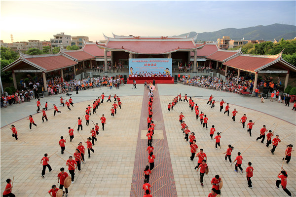 廈門翔安區(qū)武術(shù)、宋江陣暑期公益培訓(xùn)班。李毓琳 攝 宋江陣,源于明代正德年間抗倭斗爭中的軍旅步戰(zhàn)武術(shù)陣法和鄉(xiāng)團(tuán)訓(xùn)練,明末清初鄭成功將宋江陣帶到臺灣,將此軍事訓(xùn)練方法普及推廣,冠以流傳民間的《水滸傳》英雄故事與演武內(nèi)容,并不斷吸收民俗信仰祀典廟會等其他演藝成分,逐漸演化成為深受閩臺人民喜愛的一種演藝陣頭。 2009年,在廈金宋江陣被列入福建省第二批省級非物質(zhì)文化遺產(chǎn)名錄的兩年后,林良菽扛起宋江陣復(fù)興大旗,他攜手臺灣臺東大學(xué)吳騰達(dá)教授推動兩岸宋江陣文化傳承。從“閩臺宋江陣文化節(jié)”,到兩岸首個“宋江陣民俗文化廣場”、“閩臺宋江陣博物館”,演繹出“四月高雄內(nèi)門觀宋江,十月翔安內(nèi)厝看宋江”的兩岸佳話,讓沉寂多年的宋江陣成為閩臺之間基層文化交流最重要的紐帶之一。 2020年林良菽、吳騰達(dá)雙雙獲得“廈金宋江陣”廈門市級非遺傳承人的稱號。 |